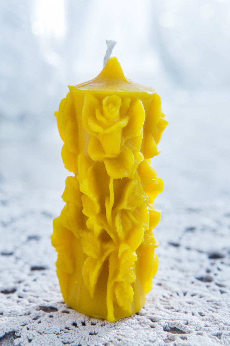 Cylinder with roses Pure Beeswax Candle l Bee Gifts | Kids Gift | Natural Wax Candle | Honeycomb Candle l Housewarming Gift